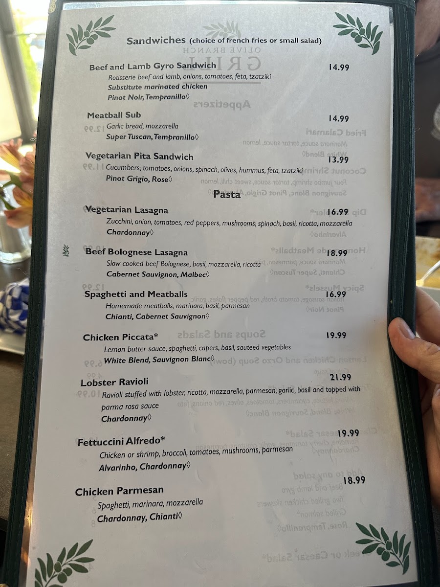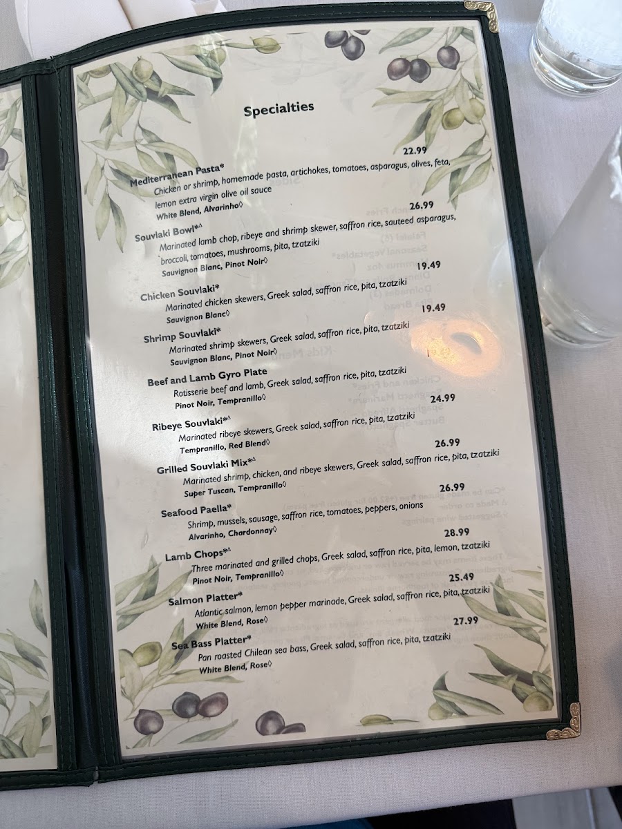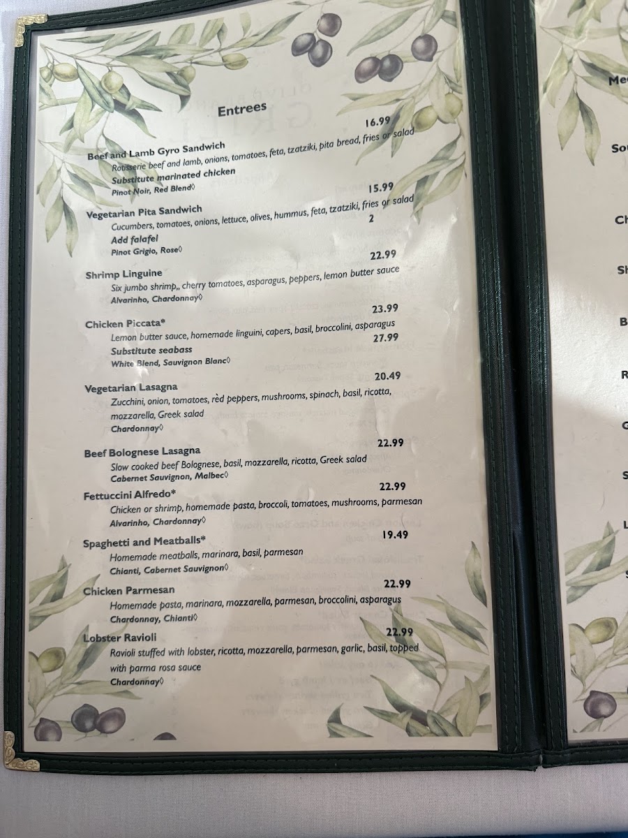 Chicken or shrimp, homemade pasta, artichokes, tomatoes, asparagus, olives, feta, lemon extra virgin olive oil sauce